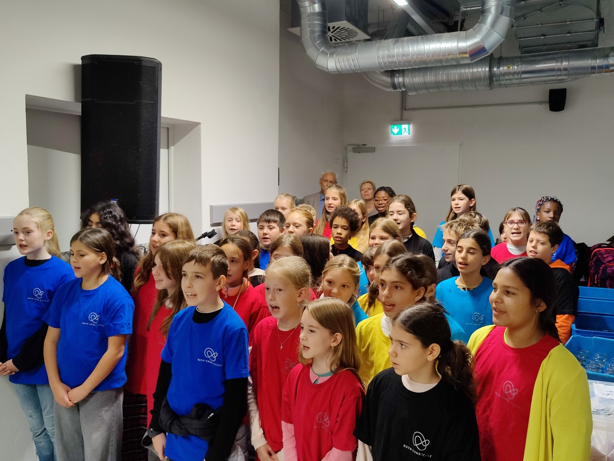 Am 23. Oktober 2025 hatte der Unterstufenchor der Ruth-Cohn-Schule seinen ersten Auftritt: Bei der feierlichen Eröffnung des neuen CAP-Markts in Denzlingen präsentierten die 39 singbegeisterten Fünftklässler:innen mit spürbarer Freude, was sie nach den ersten Proben bühnenreif gemacht hatten.Mit einem Popsong und einem Früchtekanon gestaltete der Unterstufenchor die Veranstaltung musikalisch mit und begeisterte das Publikum mit seiner frischen, energiegeladenen Darbietung.