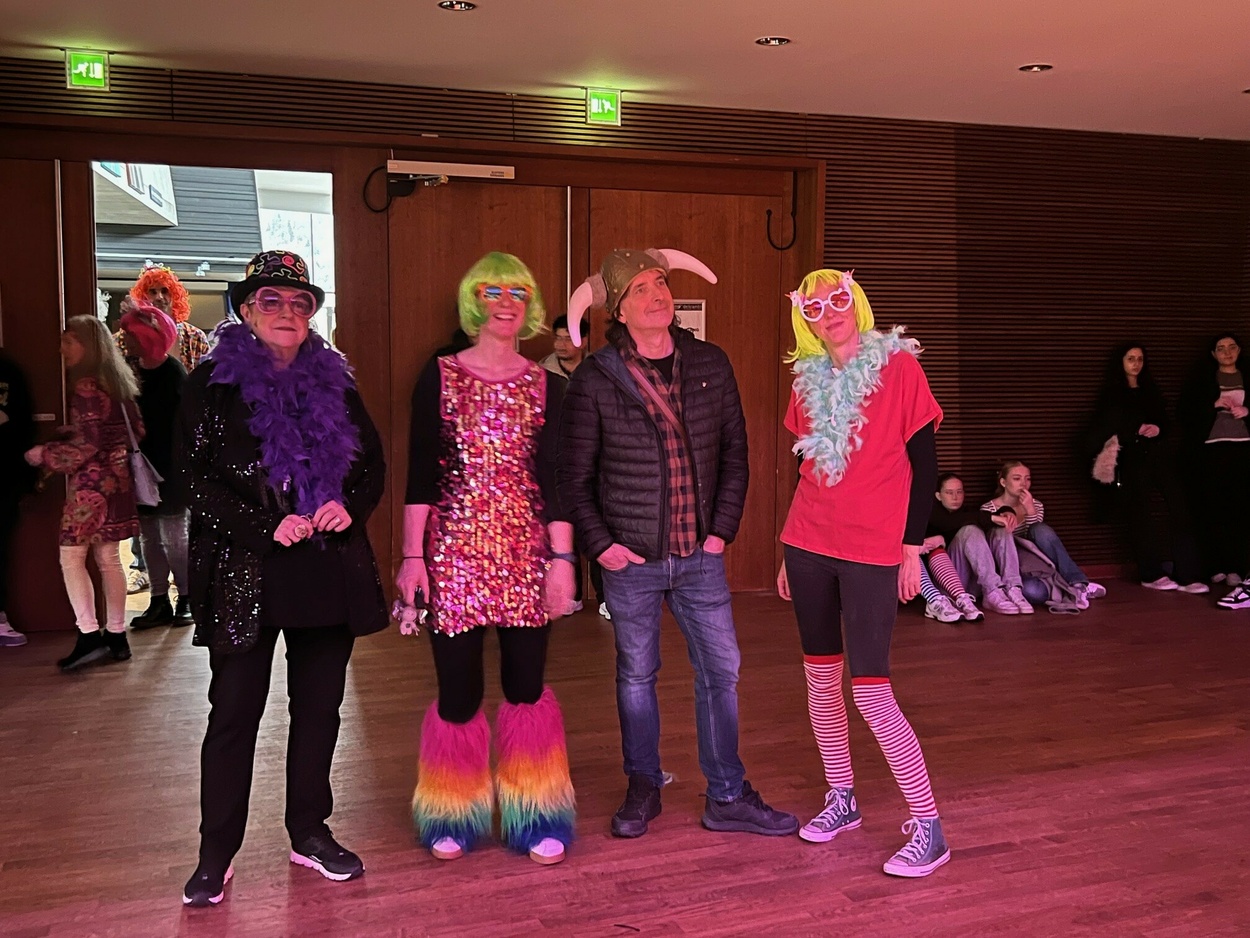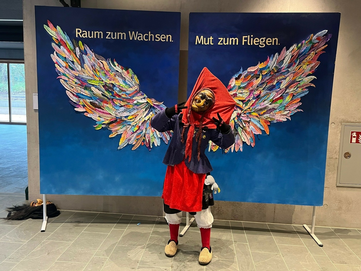 Am schmutzige Dunschdig verwandelte sich die Ruth-Cohn-Schule in ein farbenfrohes, schrilles und fröhliches Fasnetsparadies. Unter dem Motto „bunt und schrill“ erschienen Schülerinnen und Schüler sowie Lehrkräfte in fantasievollen Kostümen und sorgten schon am Morgen für ausgelassene Stimmung.Die ersten beiden Unterrichtsstunden standen ganz im Zeichen des Klassenlehrerunterrichts. Hier wurde gemeinsam gespielt, gelacht und Fasnet gefeiert, bevor sich alle auf den Weg zur großen Feier ins KUB machten. Dort wartete ein abwechslungsreiches Programm mit Musik, Tanz und viel guter Laune.