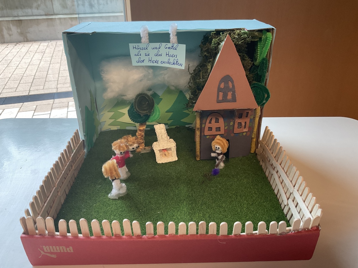 In der Aula der Schule wurden die liebevoll gestalteten Märchenkartons präsentiert. Die Schülerinnen und Schüler stellten ihre Werke stolz vor und gaben den jungen Gästen spannende Einblicke in ihre kreativen Arbeiten.