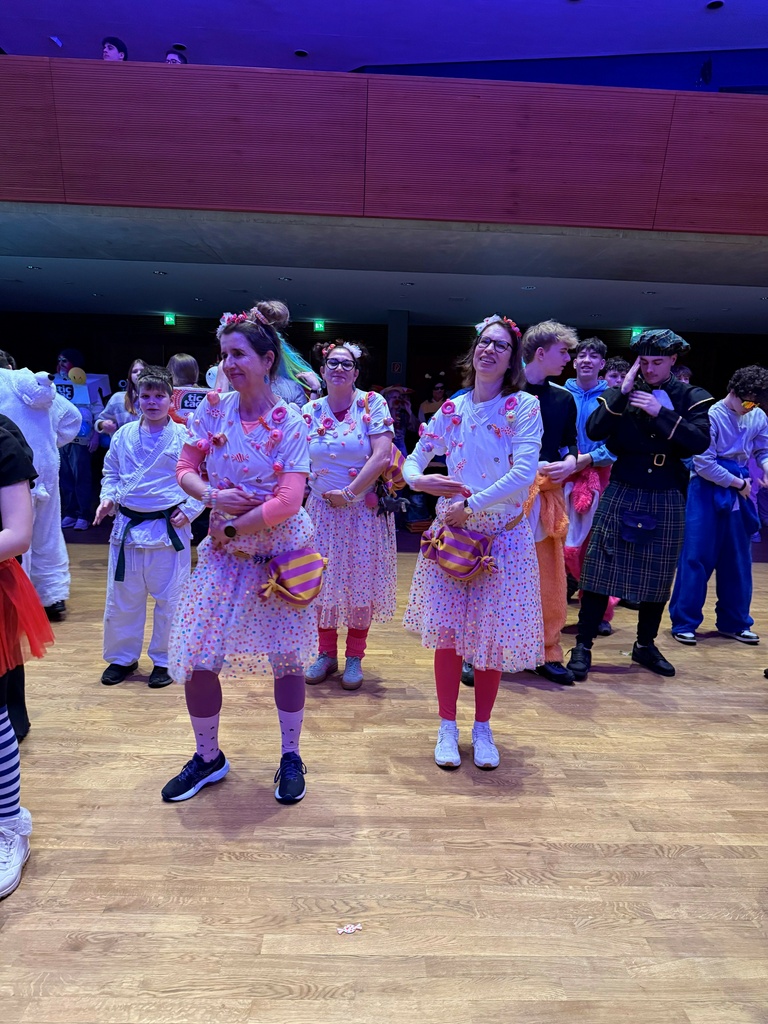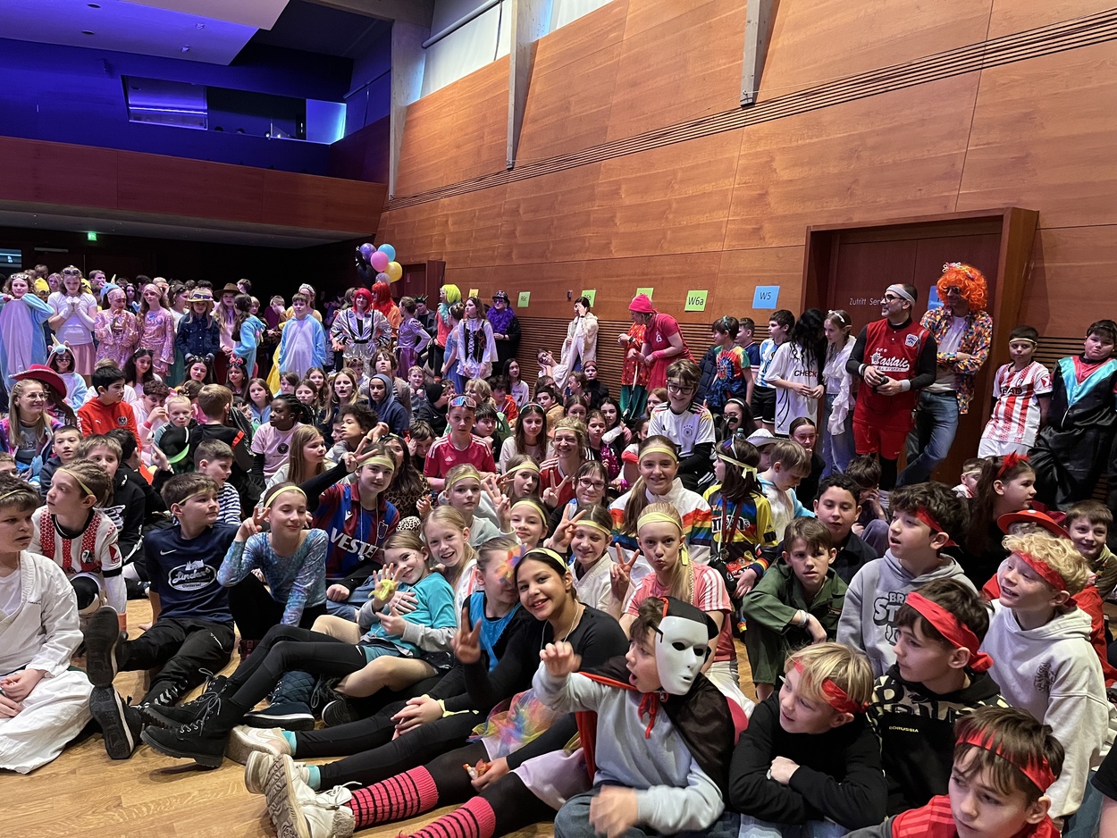 Am schmutzige Dunschdig verwandelte sich die Ruth-Cohn-Schule in ein farbenfrohes, schrilles und fröhliches Fasnetsparadies. Unter dem Motto „bunt und schrill“ erschienen Schülerinnen und Schüler sowie Lehrkräfte in fantasievollen Kostümen und sorgten schon am Morgen für ausgelassene Stimmung.Die ersten beiden Unterrichtsstunden standen ganz im Zeichen des Klassenlehrerunterrichts. Hier wurde gemeinsam gespielt, gelacht und Fasnet gefeiert, bevor sich alle auf den Weg zur großen Feier ins KUB machten. Dort wartete ein abwechslungsreiches Programm mit Musik, Tanz und viel guter Laune.
