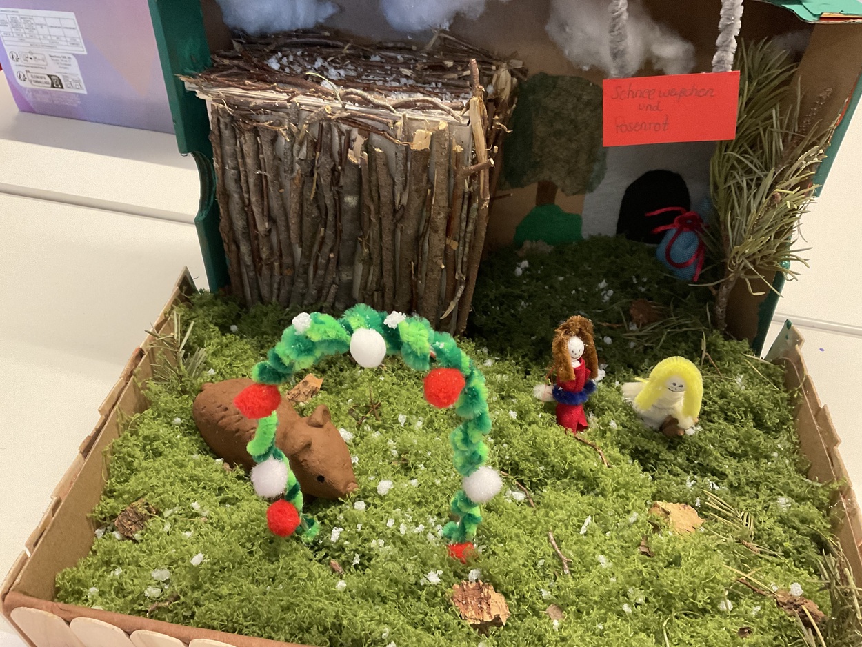 Am Montag, den 13. April, durften wir besonderen Besuch an der Ruth Cohn Schule begrüßen: Eine Gruppe von Kindergartenkindern kam zu uns, um gemeinsam mit den Schülerinnen und Schülern der Klasse R5b in die Welt der Märchen einzutauchen.Im Kunstunterricht hatte sich die Klasse intensiv mit dem Thema „Märchen“ beschäftigt und dazu kreative Märchenkartons gestaltet.