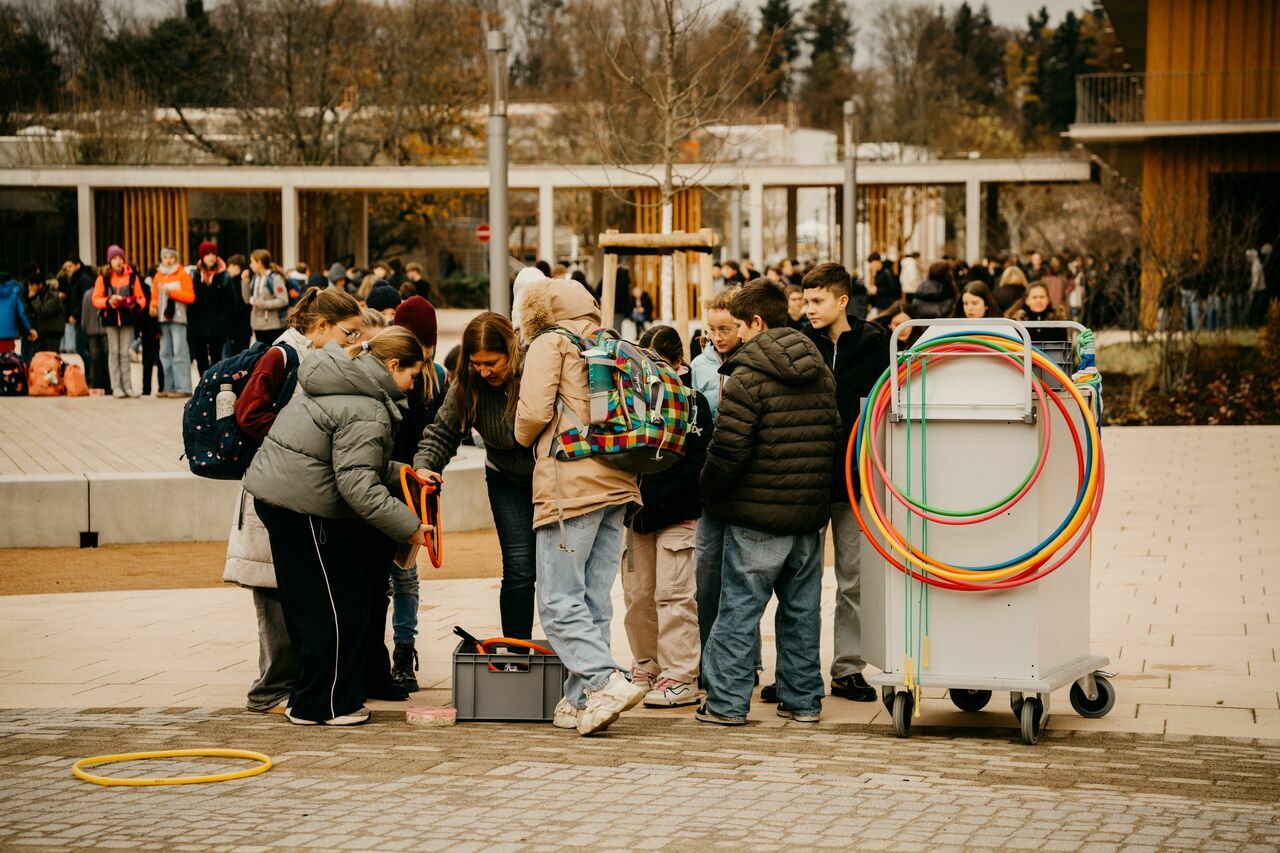 Die Spielekiste wird von Schülerinnen und Schülern der Klassenstufe 8 betreut. In jeder Pause geben sie verschiedene Spielgeräte aus, damit die Kinder der 5. und 6. Klassen ihren Schulhof aktiv nutzen können. Ob Ball, Springseil oder anderes Material – die Spielekiste sorgt dafür, dass die Pausen lebendig, bewegt und abwechslungsreich bleiben.Impressionen